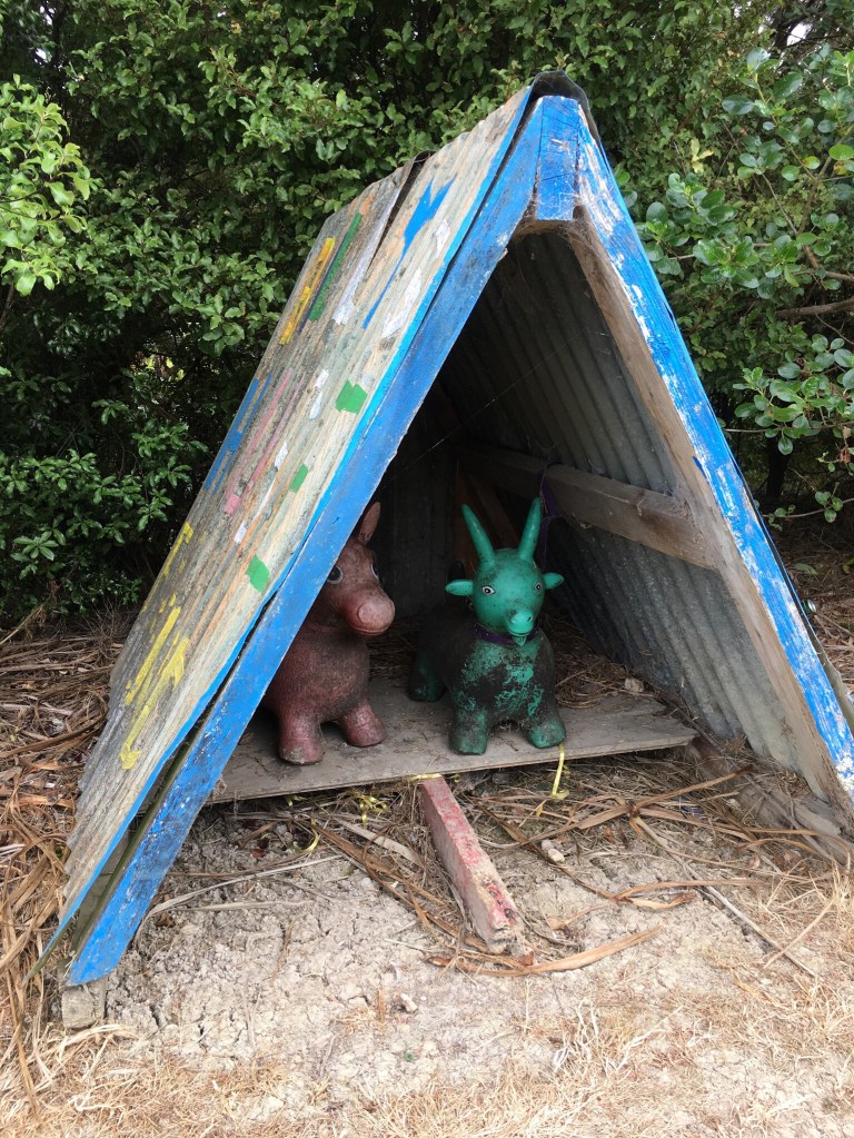 In other island oddities, there was this little teepee discovered on the walk into town and the flip flop sculpture which gets points for creativity.