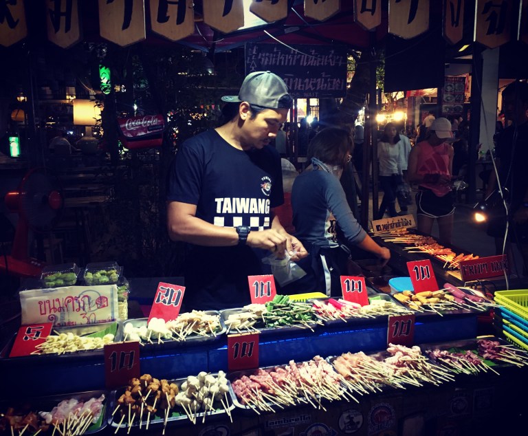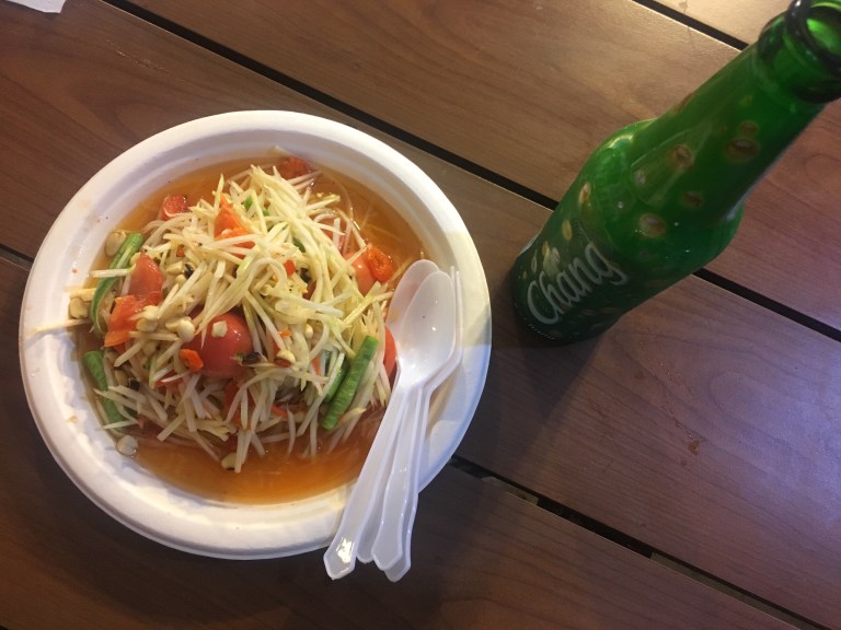 Our first night we hit up JJ Night Market, a vast space with hundreds, maybe thousands, of food stalls. Mini seafood omelets with hot sauce, check. Fried chicken skin (um, yes!), check. Meat on a stick, check. The world’s BEST (seriously, the best) papaya salad, check check check.