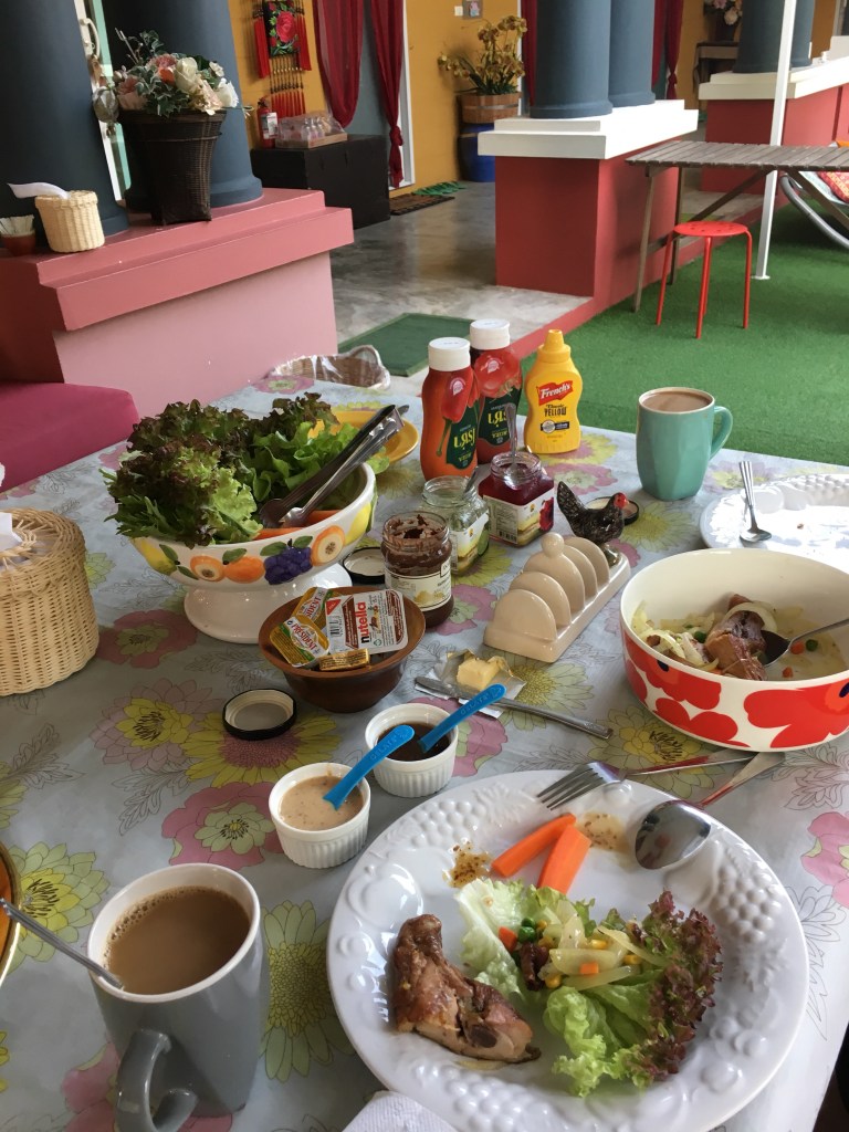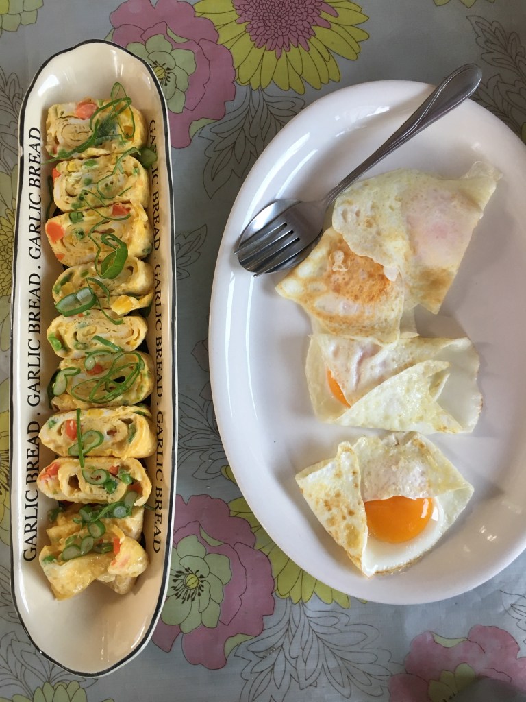 Breakfast day 1: crispy chicken in lettuce wraps, fried eggs and some sort of delicious omelet roll that was light and fluffy and creamy and unlike any omelet I’ve ever had. There was some sort of mystery magic in that roll and I assure you there were none left by the time we were done.