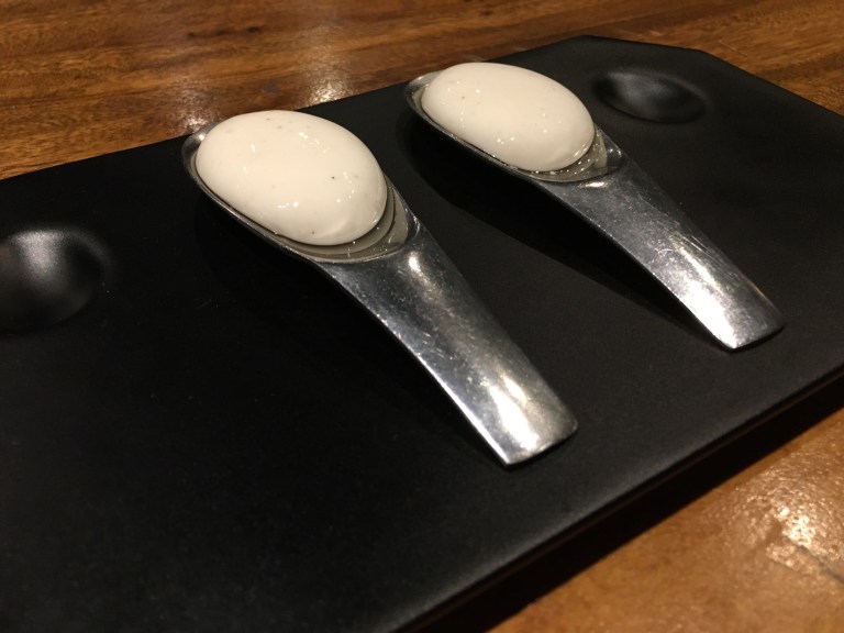 Highlight dish of the bunch, the dish that made him famous: spherical yogurt explosion