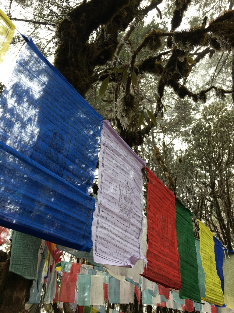 The next day we set out on my favorite hike of the entire trip, a hike at the high pass to 10.5Kft through what can only be described as a seussical forest (although its real name is Lungchutse Hiking Trail.) Our altitude was so high we were literally hiking through the clouds, so our spiritual journey felt appropriately placed. Before we departed, Jigme’s colleague informed him of a bear sighting, so Chencho joined our journey as master bear wrestler. Side note: Chencho is a man of few words, but we learned from Jigme that in addition to being our driver, he was once a monk, a yak herder, a truck driver, fought in the war against India in 2008 and was shot twice in the leg, is competing to join the Olympic archery team, and basically has done ALL THE THINGS. He was the man I wanted bringing up the rear.