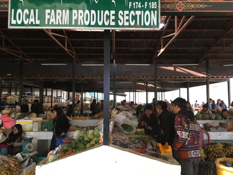At the weekend market there doesn’t seem to be anything distinguishing one farmer from another in their designated sections — rice/grains, produce, spices, incense. They all sell exactly the same thing. If you’re in the spice section, you’re selling red chilies — whole, flaked or powdered. We asked Jigme if people have a favorite farm stand and he looked at us blankly. You just walk up to the first one you encounter and that’s where you’re buying x that day. It’s that simple.