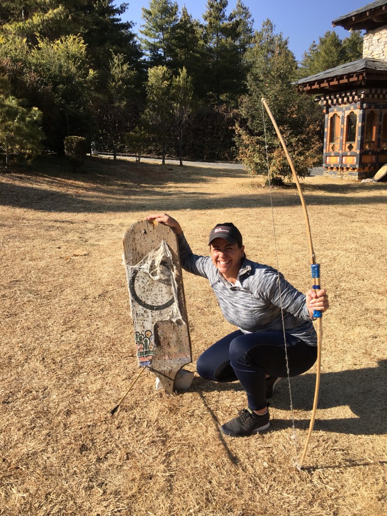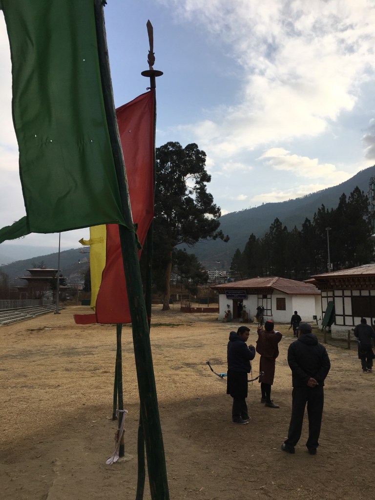 Ok, let’s talk about archery, Bhutan’s national sport. They live for this sport. Will play for hours, dressed in their ghos (a mandate, and also noteworthy that the fact I said gho means women are not allowed to play.) It’s also worth noting that if a stray arrow accidentally kills someone you’re subjected to 3-5 years in prison for manslaughter. I nearly found myself there. Eeep.