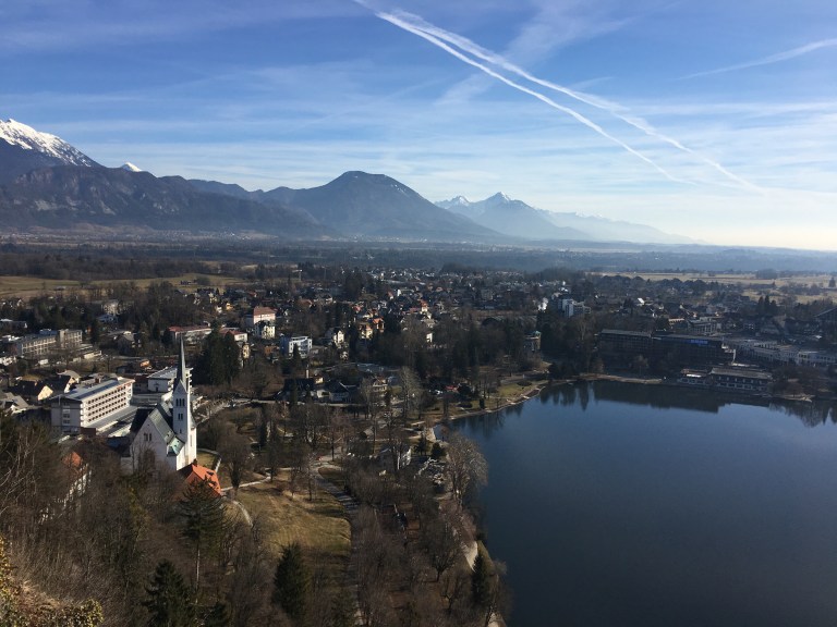 We flew in over the great sprawling snow-capped Alps with a clear view of charming little Alpine towns down in the valley. In fact, we could see Lake Bled from above with its storybook chapel perched on a tiny island in the middle of the famed flat mirrored lake. Welcome to the north, a far land from Southeast Asia.