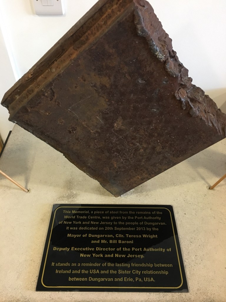 Tom gently took my arm and led me first to the City Council building to show me where they have a piece of the World Trade Center displayed, dedicated by none other than my dear friend Bill. He then led me around town sharing the history of Dungarvan, stories of the Normans, the Vikings, the Brits. He regaled me with tidbits about shipwrecks, and town hangings, and wives of wealthy dead men who insisted on verbose plaques commemorating their husbands very generous donations. And when they weren’t verbose enough, they had them rewritten. Feisty Irish women.