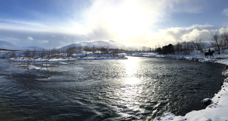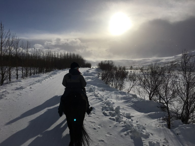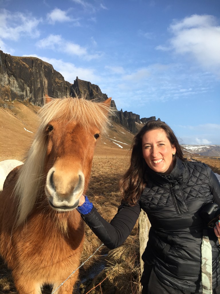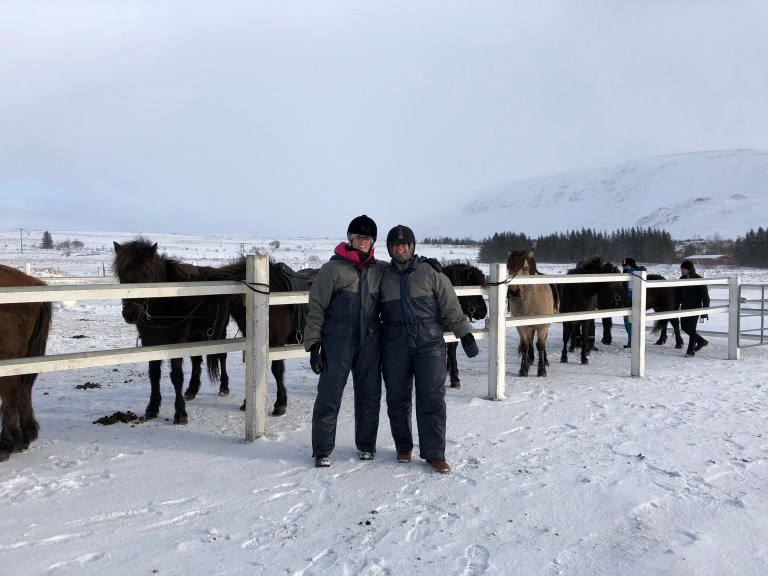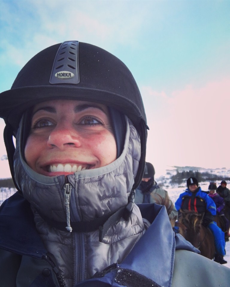 My cousin Kelly joined me for this leg of the trip (yay!) and arrived the day after me, so before we took off on our 2-day trek along the south coast, we decided to squeeze in half a day of adventure riding Icelandic horses. First, they stuffed us into what can only be described as puffalump suits — full-body, insulated, waterproof jumpsuits that make you walk like an Oompa Loompa, but promised to keep us dry and warm, because ya know, rain, snow, sun, hail, rain. If you go to Iceland, you MUST do this, even if you’ve never ridden a horse before. These short-legged, gentle creatures were the sweetest companions to lead the way through the snowy back-country of Iceland. We climbed hills, trotted through a few rivers (surreal) and tried to take photos of the stunning snow-covered mountainscape without falling off our four-legged friends. No one needed to smile for photos, the entire group (including horses) had permanent grins on their faces for two hours — it was the most thrilling and breathtaking start to our time away from planet earth.