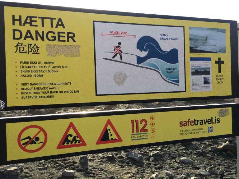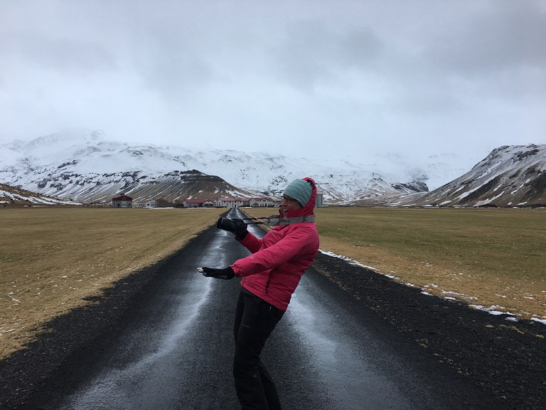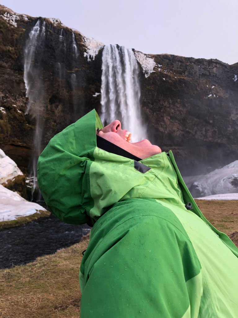 And when you have 10% of your country covered in glaciers and introduce global warming, you get massive rushing rivers and lots of waterfalls that are worth a stop too. I guess as a homeowner you hope insurance covers a waterfall gone wild — look at how strong the wind must be to blow the water sideways. Eeep. We got slightly soaked all in the name of a good photo. Also, hello new landscape.